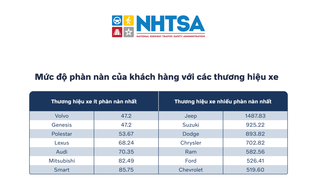 Trong tổng cộng 34 thương hiệu xe được nhắc tới trên 833,761 lượt khiếu nại gửi về Cơ quan An toàn giao thông quốc gia Mỹ (NHTSA), Volvo là cái tên ít được nhắc đến nhất với chỉ trung bình 47,2 phàn nàn trên mỗi mẫu xe khảo sát. Chỉ duy nhất thương hiệu Genesis đạt được sự hài lòng tương tự như Volvo từ phía khách hàng, nhưng trên lượng xe khảo sát thấp hơn đáng kể với chỉ 15 mẫu.