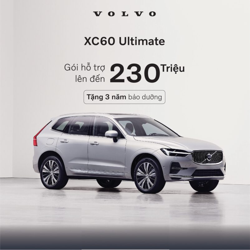 XC60 Ultimate Dark 2,320,000,000 vnđ Từ nay, đến hết ngày 31/12/2023, Volvo Car Việt Nam thực hiện chương trình “Tận hưởng cuộc sống cùng Volvo” dành cho Khách hàng. Theo đó, khi Khách hàng mua các dòng xe Volvo trong khoảng thời gian trên sẽ nhận được Gói ưu đãi xứng tầm đẳng cấp, bao gồm:– Ưu đãi 230 – 290tr Lệ Phí Trước Bạ